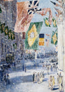 City Street with Colorful Flags