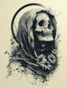 Hooded Skull with Flowers
